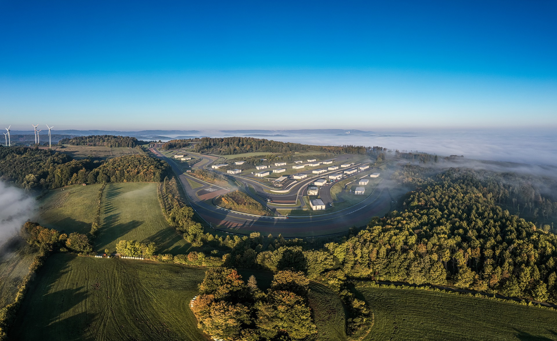 - Die S-Kurve schlängelt sich am modernen Clubhaus des Bilster Bergs vorbei.