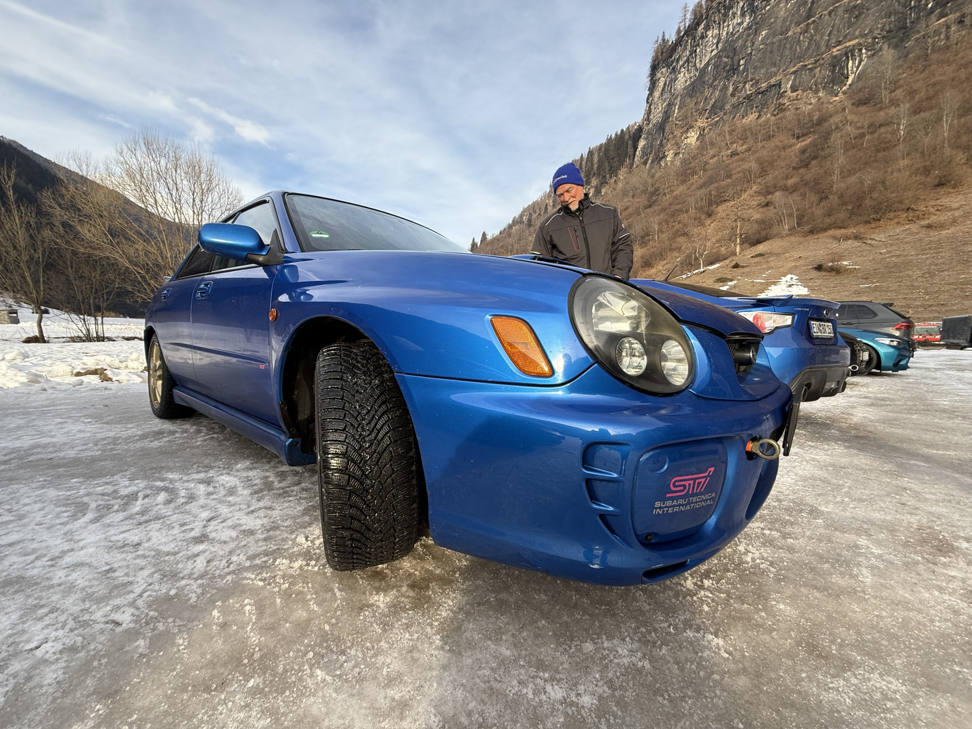 Super, alors je commence. Nous avons trouvé du soleil et des conditions de neige et de glace correctes lorsque nous nous sommes rendus vendredi à Muhr, en Autriche, pour un entraînement hivernal. Nous, c'est-à-dire moi, Rudi Lupfer, et mon ami Ralph Dentler, 47 ans. Nous sommes unis par notre passion pour le sport automobile et la musique heavy metal. Je possède ma voiture d'entraînement, une Subaru WRX STI de 2003, depuis l'automne 2018 et je ne l'utilise qu'en hiver. Je la transporte sur une remorque pour les entraînements.